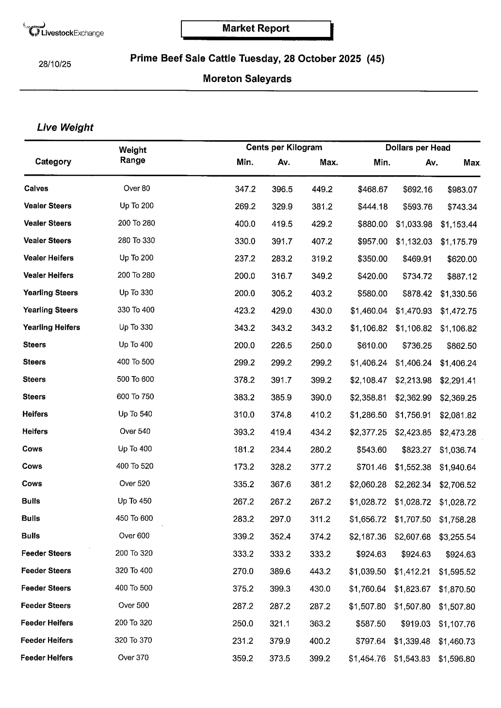 | WEANER HEIFERS | WEST MORETON ANGLICAN | CHAROLAIS X | 341.2c/kg - $887 p/head |