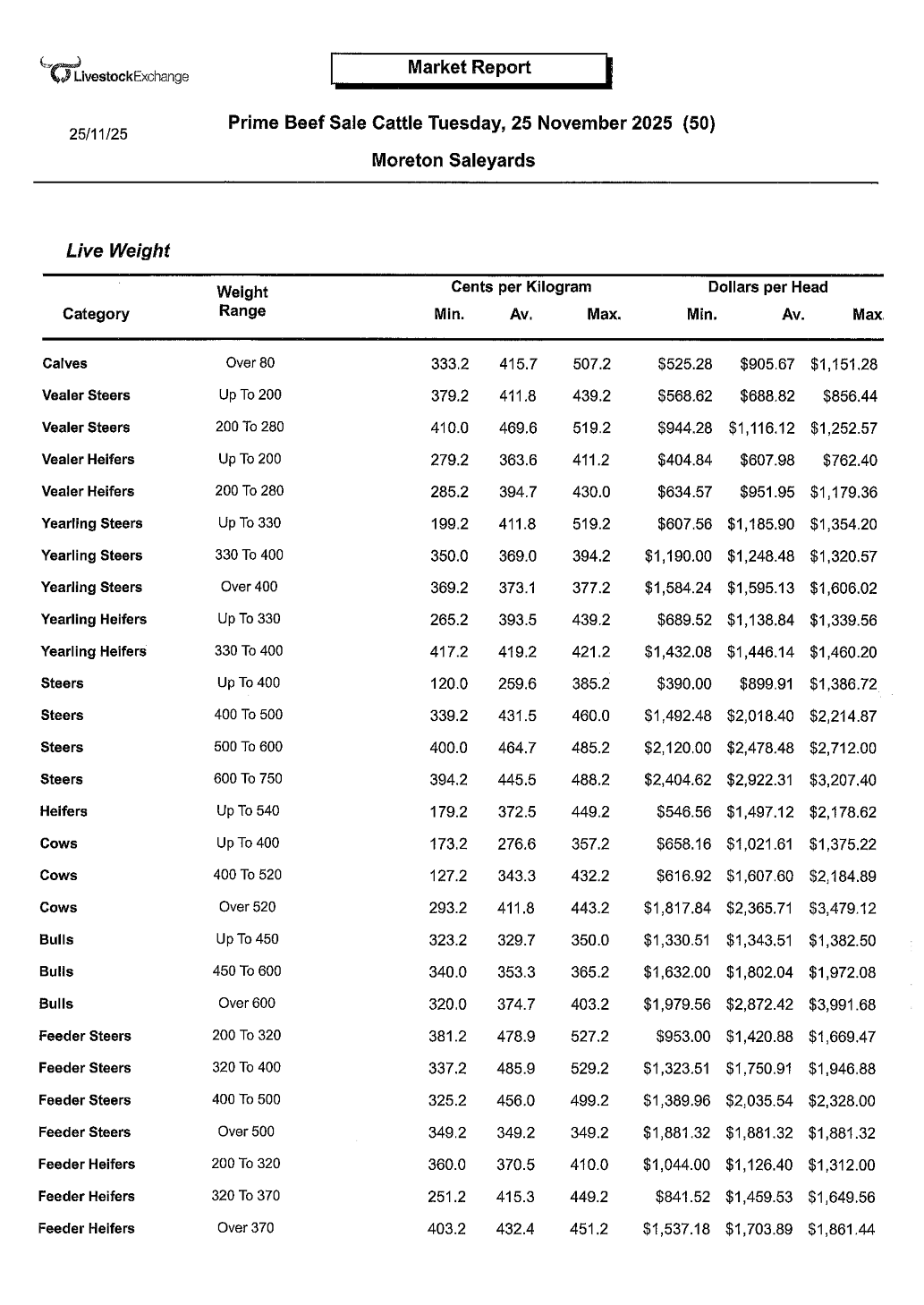 Agents Boyd O’Brien Bartholomew reported a much larger yarding of 769 head. In excess of 250 cows came to hand and sold to a fully firm market, in line with last week’s extremely strong rates. Limited pasture steers and ox came to hand and achieved great results with all buyers in attendance. Vealer and yearling heifers to slaughter sold to a much stronger market with restocker buyers and processors competing fiercely for quality lines. Feeder and restocker steers sold very well.