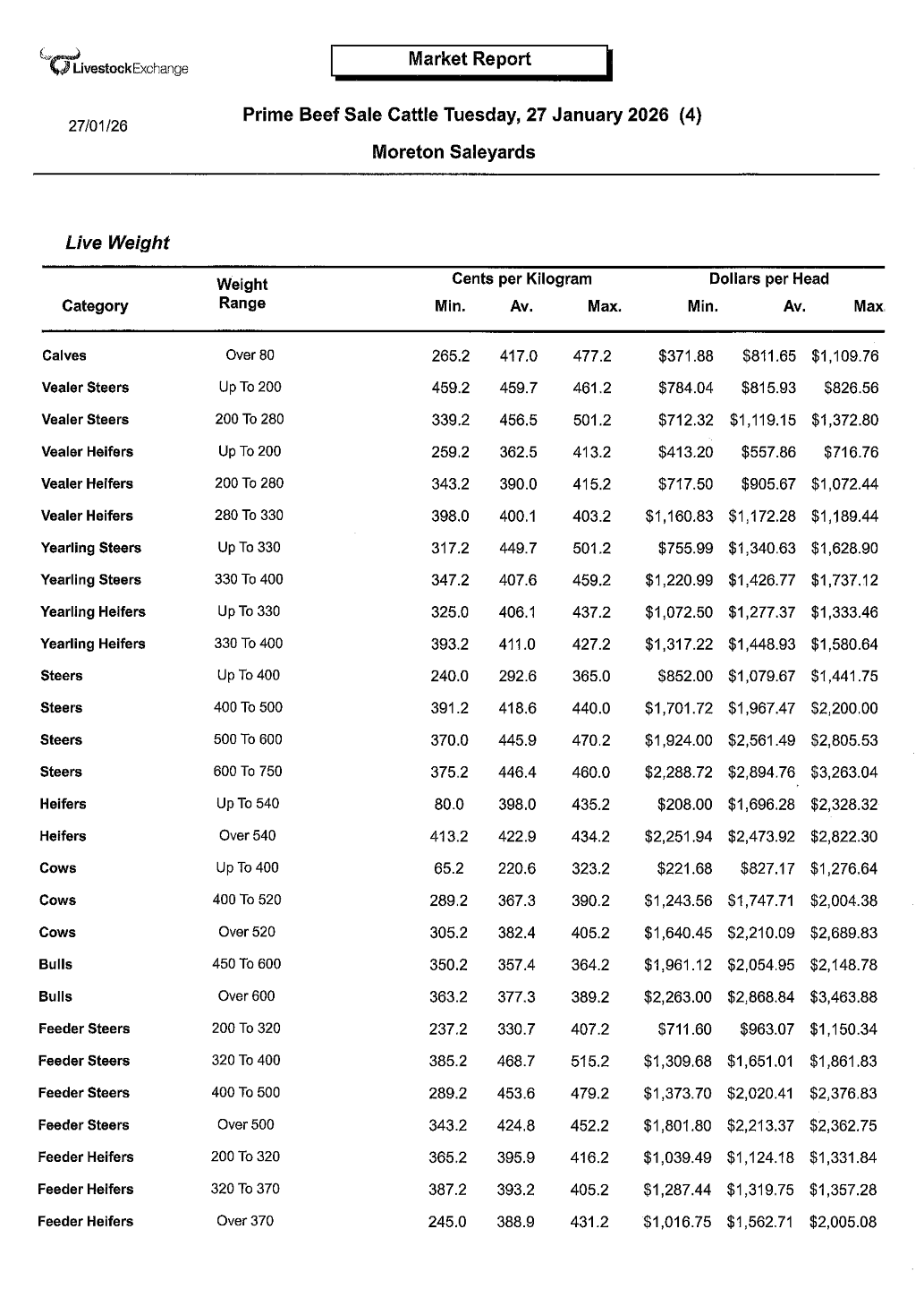 | HEAVY BULLS | G & SW GRAZING | SANTA | 389.2c/kg - $3463 p/head |