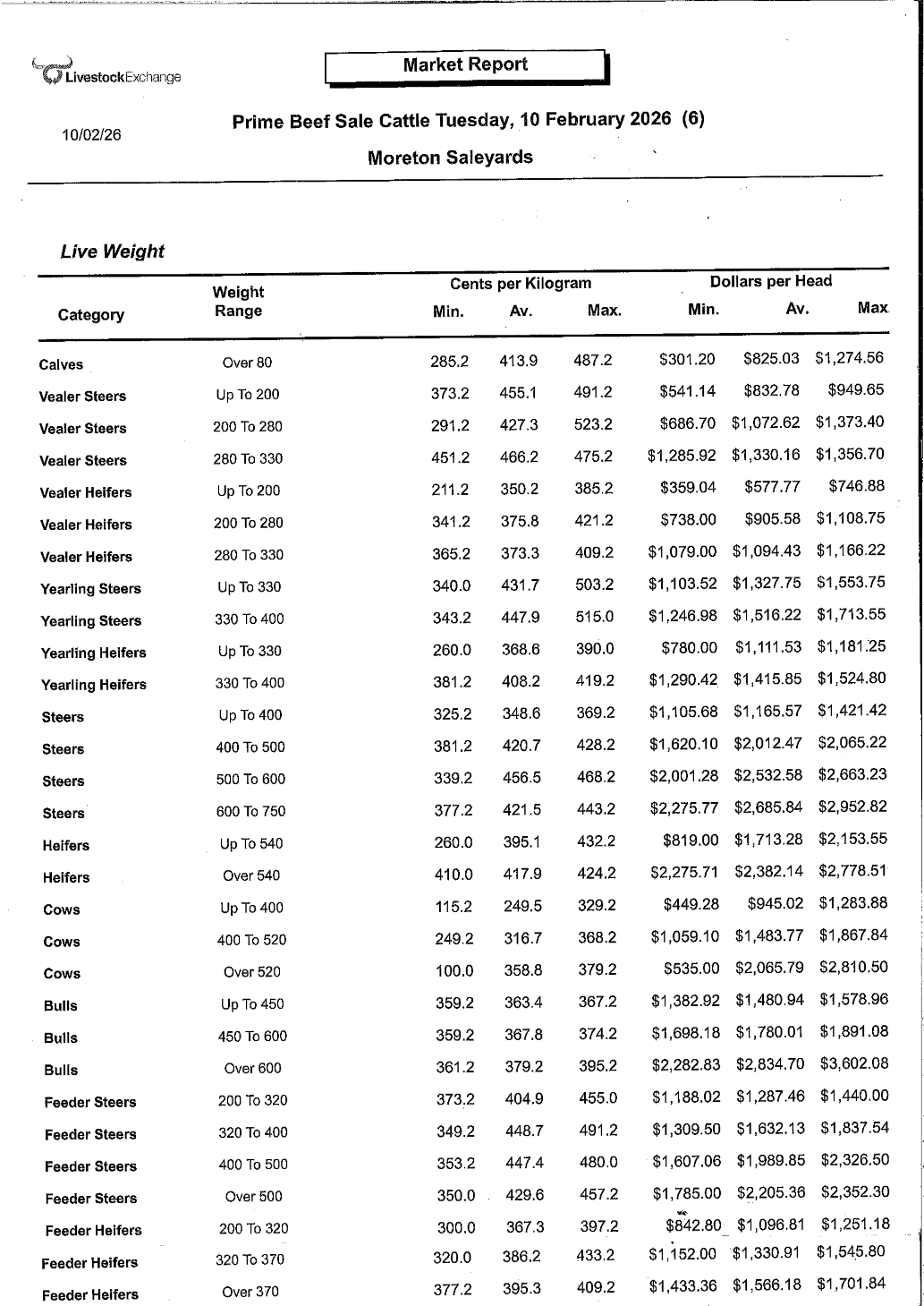 | HEAVY COWS | S & D COPELAND | SANTA | 370.0c/kg - $2516 p/head |